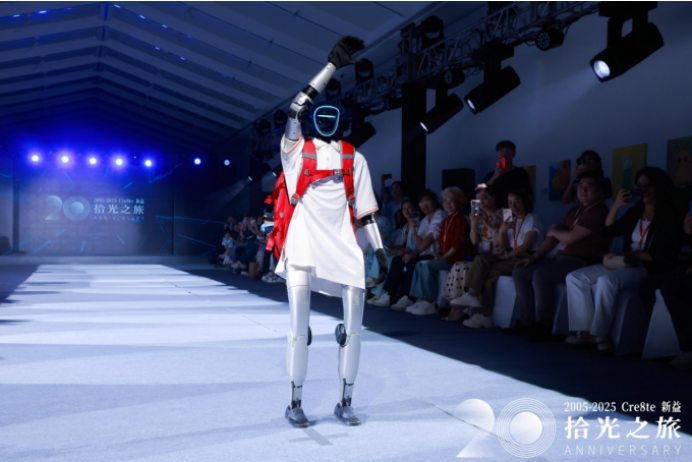 未来篇:“美育共生,让爱传递”。新中式高定与校服机器人同台,寓意未来的无限可能。