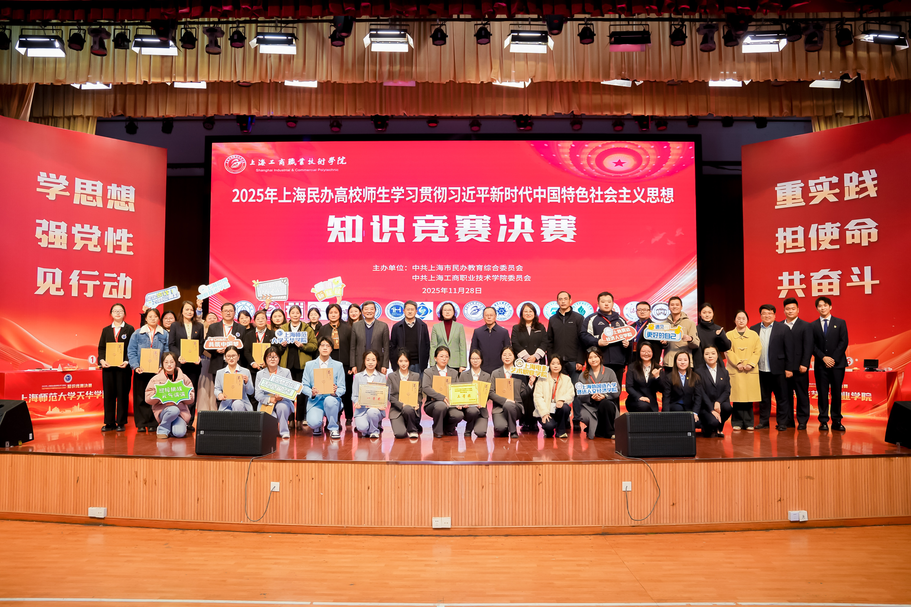 “作为民办职教学子,我们既要精修技能,更要筑牢思想根基。”11月28日,在上海工商职业技术学院竞赛现场,来自参赛选手掷地有声的回答,赢得台下师生的掌声。当日,由中共上海市民办教育综合委员会、中共上海工商职业技术学院委员会主办的2025年上海民办高校师生学习贯彻习近平新时代中国特色社会主义思想知识竞赛圆满收官,17所民办高校的师生代表以赛会友、以学促行,在思想的碰撞中彰显新时代职教人的使命担当。