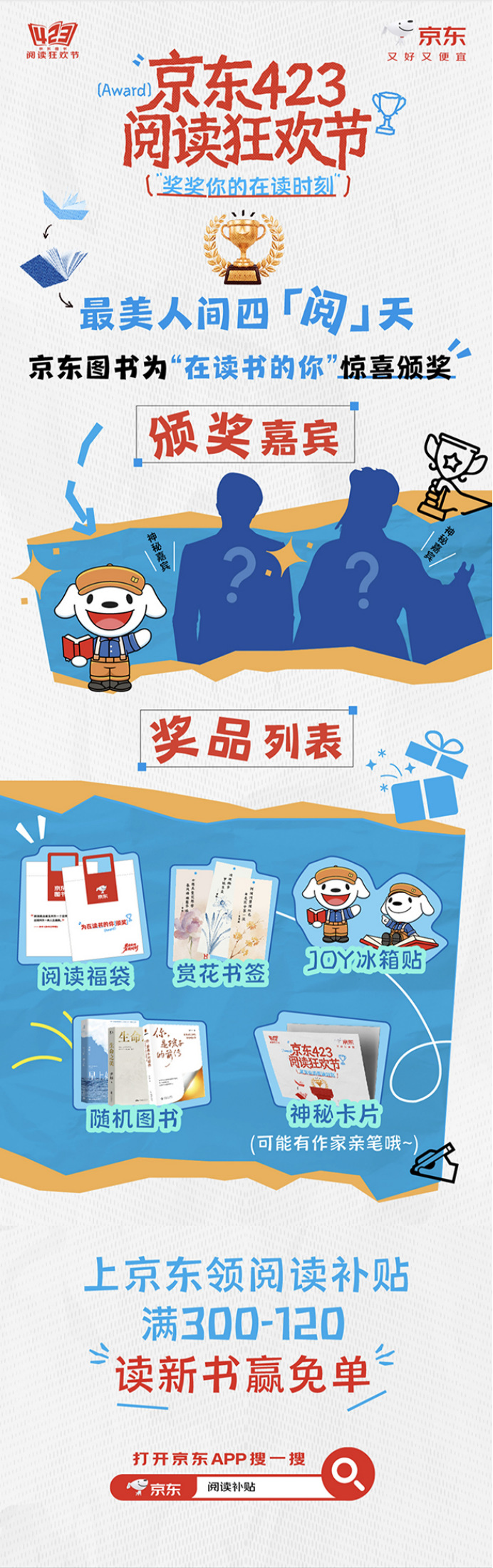 京东图书始终践行《全民阅读促进条例》,以“423阅读狂欢节”系列活动为载体,将阅读的温暖传递到高铁、车站、景区、书店与商圈,让全民阅读真正融入日常。接下来,京东图书还将在京东集团总部举办阅读主题活动,并在北京合生汇带来人气漫画家幽·灵的签售会,同时打造丰富多样的线上线下互动活动,为更多读者带去阅读的乐趣与惊喜。打开京东APP搜索“阅读补贴”,领取购书优惠,在书香中遇见更好的自己。