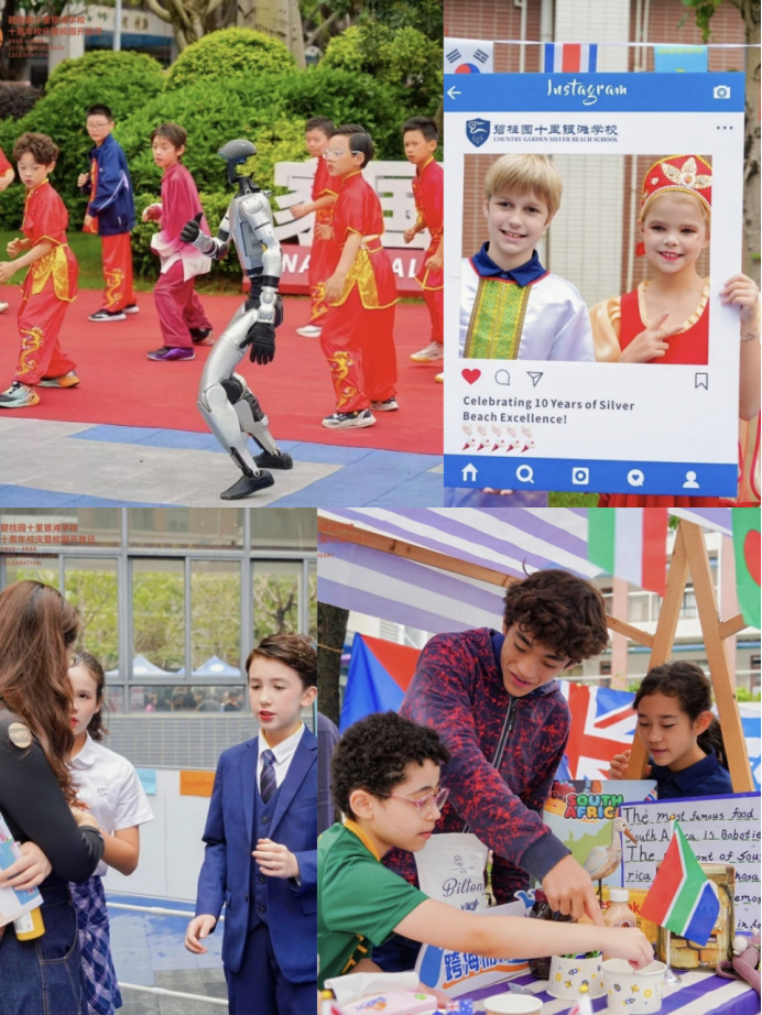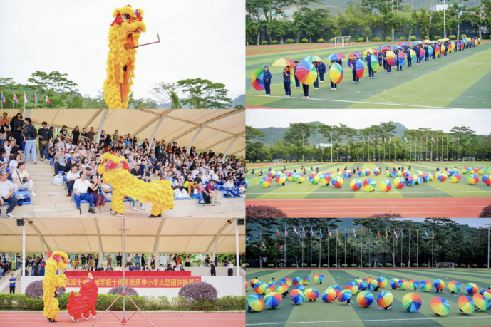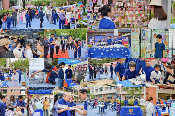 校园特色展区精彩纷呈,全面展现十年育人成果。银滩幼儿园、多国学生风采亮眼呈现;UOI 超学科、IDU 跨学科探究成果丰富,学生主导会、科创作品、生活技能展示尽显自主成长力量;体育特色、书画艺术、学生社团百花齐放;融通高中部与国内中学部全方位呈现多元融合、个性发展的校园生态。