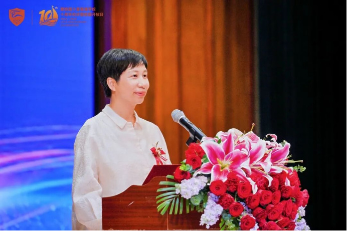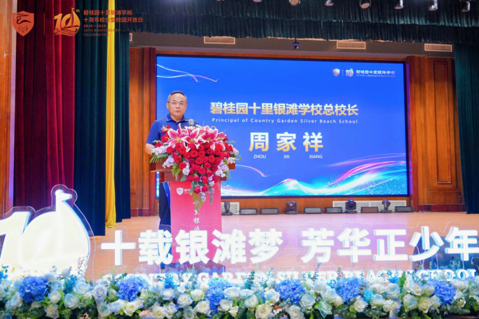 她回顾了碧桂园学校创始人的教育初心,肯定了银滩学校十年来在教学成果、课程建设和品牌荣誉上的卓越成绩。学校形成了十五年一贯制培养体系,践行“中西融通”理念。集团将继续支持学校,培养具有家国情怀与全球视野的人才。