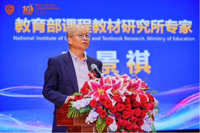 他肯定学校作为教育部课程教材研究所课改实验基地的先锋作用,尤其在“融通+双语”课程体系和跨学科教学方面的探索。他希望学校在新起点上做课程改革先行者、数字教育探索者、全面育人践行者,为全国基础教育贡献“银滩经验”。