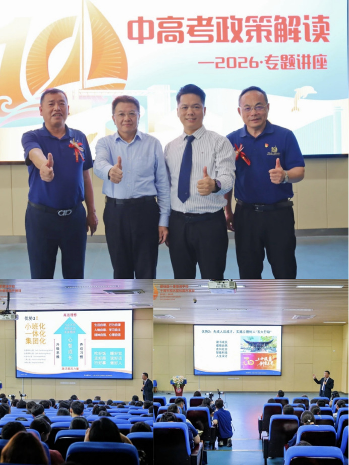 学校特邀碧桂园教育集团双语教育中心总经理强光峰博士及广东省生涯教育研究院院长李嘉辉博士,为家长学子深度解读最新改革要点,提供备考策略与选科指导,助力学生清晰规划学业路径。